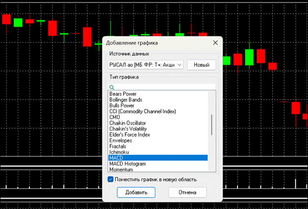 Как добавить инструмент: Панель инструментов → выбрать объект → кликнуть на график. Это делают из меню.